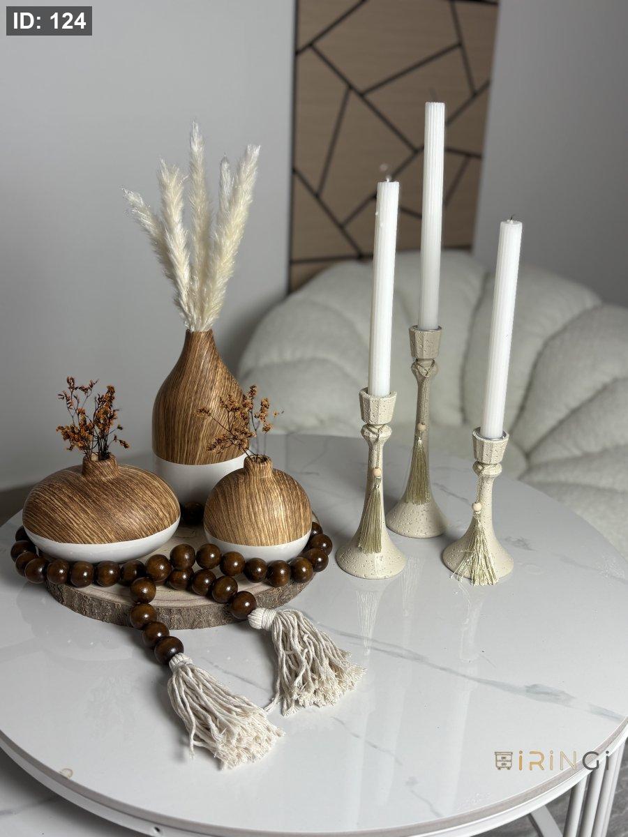 بكج مزهريات قزاز باللون الخشبي ( شامل كلشي بالصورة )